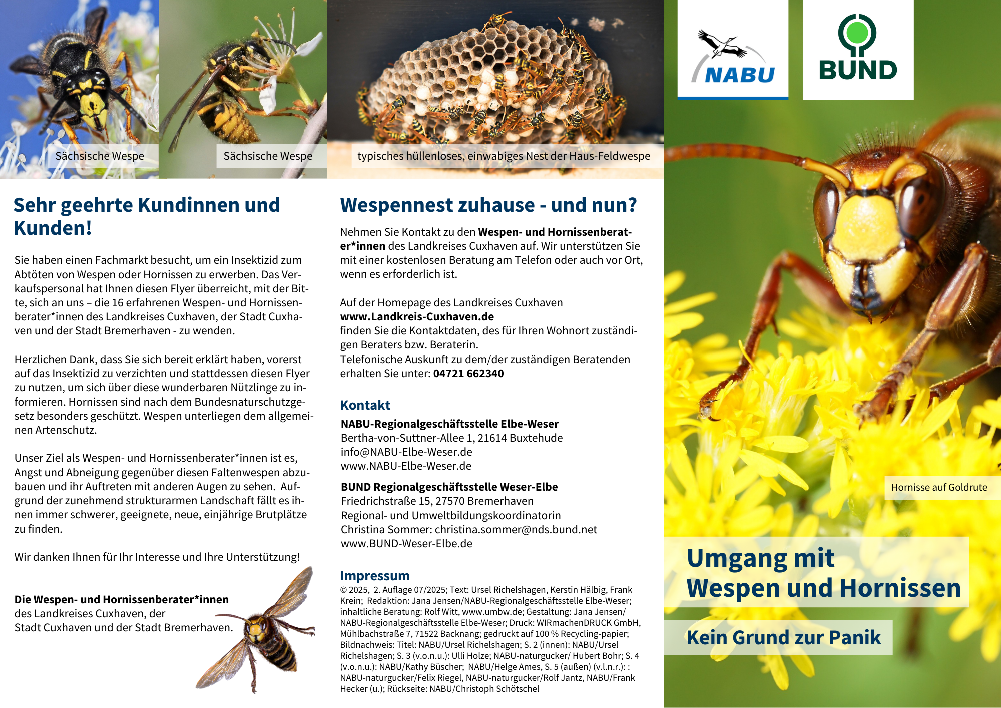 Wir, die 15 ehrenamtlichen Wespen- und Hornissenberater des Landkreises Cuxhaven stehen Ihnen jederzeit zur Verfügung, in dringenden Fällen kommen wir zu Ihnen nach Hause.